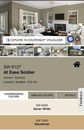 The same article I referenced last week went in-depth about this as well. Each oak accent usually has an undertone: red, orange or yellow. When you look at a color wheel each of those have a complementary color across from them. Or as you will notice, even some of these paint chips show a complementary color at the bottom.
